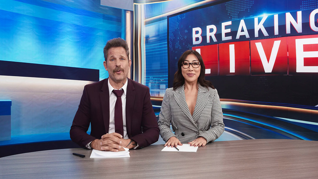 Description: Nicole Doshi is an anchor for the most sex-positive news broadcast of all time, along with co-anchor Scott Nails and weatherman Van Wylde. Both dudes have a turn eating Nicole's pussy while she's at the news desk, before all hell breaks loose and they're fucking on the news desk! Hope the sponsors don't see this!